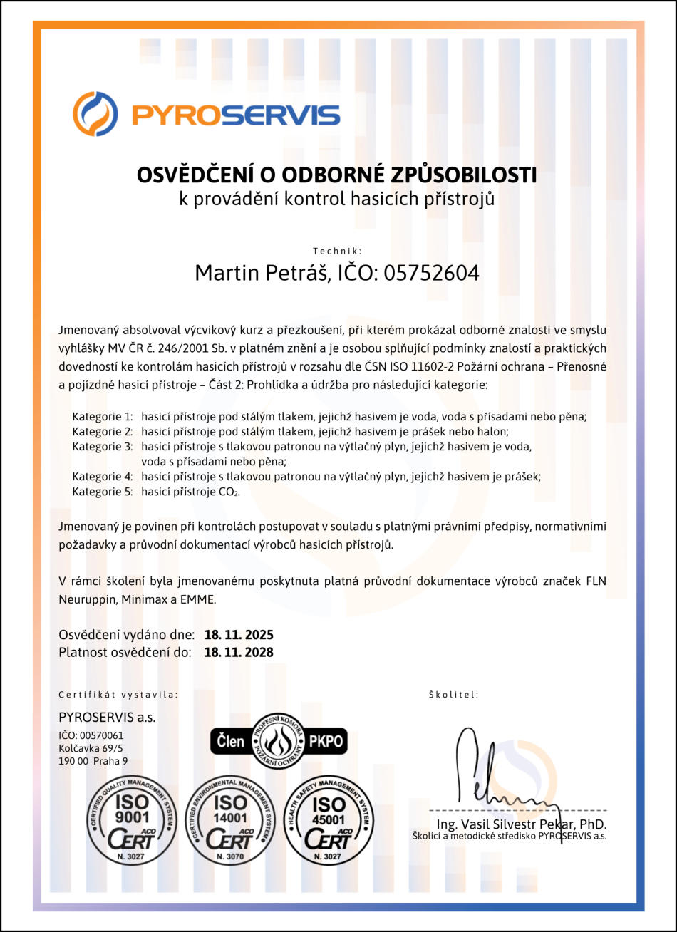 armatury. Zajistíme včetně proškolení zaměstnanců a případně i požárních hlídek.