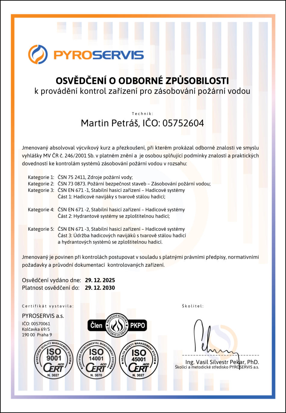 HP vodní a pěnové každé 3 roky