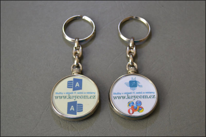 Klíčenky kovové - kulaté a oválné s barevným logem