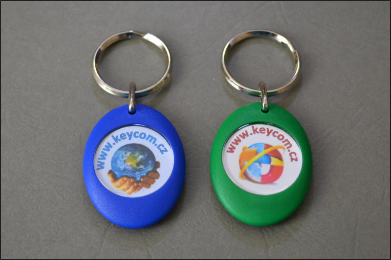 Klíčenky plastové - kulaté a oválné s barevným logem
